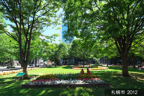 大通公園/大通西9丁目付近。中央はレジデンスタワー札幌