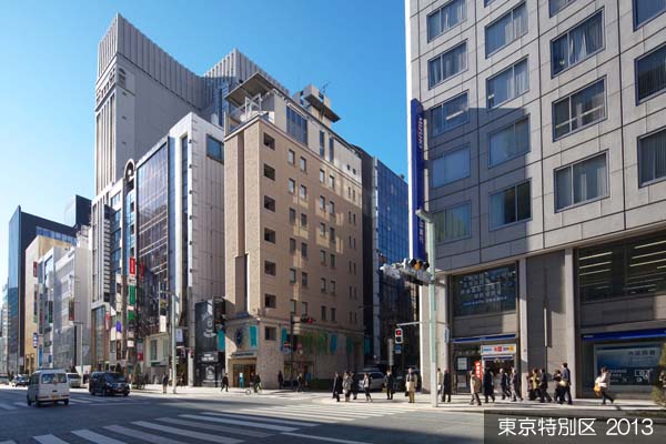 銀座1丁目交差点を渡り振り返る。メルサ Ginza-2(銀座2丁目)