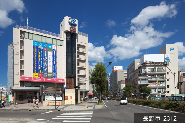 田町西交差点を渡って振り返る。中央は長野グランドシネマズ。